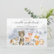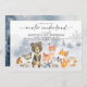 Celebre o primeiro aniversario de sua criatura com este convite caprichoso que apresenta um grupo de animais bonitos da floresta e paisagem florestal gelada em cores elegantemente mudadas de férias. Cada convite vem com um design de retorno correspondente, mas você pode adicionar uma foto adicional ao verso se preferir, clicando no botão "personalizar mais".