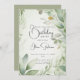 Aniversário para ela - convite de aniversário - Folhagem Verde do Ouro Rustic Elegant Watercolor, Aniversário verde, em tons de verde e ouro - o dorso é uma cor coordenadora - caligrafia manuscrita - código QR no verso para RSVP - fácil de personalizar o modelo - design original por ©WhimsicalArtwork™ para o BarefootBride ™. Isto também é parte de uma suite completa de artigos de papelaria de casamento, assim como Chás de fraldas, Aniversário e Convites de Natal. Para perguntas ou assistência, entre em contato com o designer indy.designer@yahoo.com.