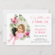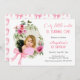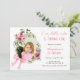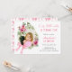 O convite de aniversário de uma menina doce e bonita apresenta um quadro de rosa com cor d'água com um arco e foto cor-de-rosa.