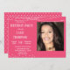 Adicione a sua foto favorita da honra de aniversário para um convite de aniversário gentil. Este convite às luzes cor-de-rosa, branca e corda agradará a qualquer aniversariante. Use nossa modelo fácil para adicionar seus detalhes de festa de aniversário. A foto será ajustado corretamente quando você substituir a imagem de amostra. Se tiver problemas, envie-me uma mensagem através do botão de contato do designer.