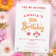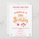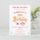 Bonita Boletim de Boas Flores, Convite de Aniversário da Garota Floral. Celebrar o aniversário de uma garota especial com este encantador convite. Com um design floral desenhado à mão, um texto alegre de "Aniversário" em letras brincalhonas desenhadas à mão laranja, este convite de aniversário traz calor e alegria a qualquer celebração.Adicione seus detalhes de festa de aniversário.