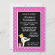 Um convite de aniversário para meninas para as artes marciais. Apresentando uma ilustração de menina loira com cabelos vestindo um cinto amarelo. Mostrado a rosa e preto. Perfeito para uma festa de aniversário de Taekwondo ou Karate. Personalize facilmente as informações da sua parte.