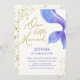 Convite Aniversário da Glitter Dourada de Cauda da Água Se