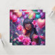 Bonito convite personalizado de aniversariante. Gráficos bonitos de uma bela garota afro-americana cercada por balões e flores roxos e rosa. Bonito convites para uma adolescente ou pré-adolescente. . As cores são cor-de-rosa e roxa. Isso seria bonito para qualquer adolescente ou festa de aniversário 16.