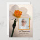 Convide os convidados a lembrarem-se do seu amado, um ano depois de terem falecido com o elegante Convite de Primavera da Morte da Flor Branca. Esta comemoração popular da floricultura do memorial do tributo de vida apresenta uma bonito fotografia floral de uma flor bonito de narciso branco no caule com um centro de laranja e fundo bege. Personalize-o com uma fotografia, o nome do falecido e as datas de nascimento e morte. Inpo perfeito ou ideia para um evento de março, abril ou maio na primavera. Disponível como convite impresso para envio e/ou como download digital para fácil compartilhamento digital online.