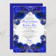 Convite de Aniversário do Royal Blue & Silver Floral Quinceanera