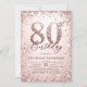 Celebre em estilo com este glamouroso convite de 80, perfeito para uma festa de aniversário de marco. Apresentando um fundo rosa de ouro metálico com efeito de destaque no número 80, esse convite brilha com sotaques de brilho e confete metálicos que criam uma elegante estrutura festiva. Ideal para festas de aniversário sofisticadas, convites de aniversário de luxo ou uma festa tematizada de ouro rosa, esse convite é feito para wow hests e dar o tom para uma celebração cintilante.