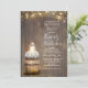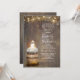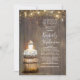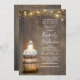 Convite de aniversário rústico floral apresenta o barril de vinho de madeira, flores para o hálito do bebê, cordas de luz e lâmpada de safra - lanterna