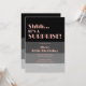 Este convite simples e esteticamente desenhado apresenta uma tipografia rosa dourada em negrito sobre um fundo de faixas de cor preta. Você pode personalizar o texto facilmente. Compartilhe a alegria com os seus amigos e família e faça deste aniversário milestone para se lembrar!