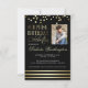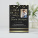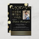 Este convite de aniversário surpreendente apresenta faux gold foil confetti no topo e listras no fundo contra um fundo preto. Personalize facilmente este design com sua própria foto e convites de festas clicando em "Personalizar este modelo". Envie esses convites modernos de ouro e negro e faça uma impressão real dessa festa de aniversário surpresa!