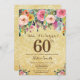 Convite do aniversário da surpresa floral Dourado do brilho 60th para mulheres. Flor floral da aguarela. Fundo Dourado do brilho. Flor cor-de-rosa, amarela, alaranjada, roxa. Aniversário adulto. 13o 15o 16o 18o 20o 2ø 30o 40th 50th 60th 90 100th do 80 do 70, algumas idades. Para uma personalização mais adicional, clique por favor "personalizam-no" botão e usam-nos nossa ferramenta de design para alterar este modelo.