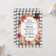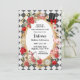 Convide seus hóspedes no buraco do coelho com este convite de aniversário encantador de Alice no País das Maravilhas! Projetado com uma paleta de cor preta e vermelha, ele apresenta uma mistura de padrões de pranchas de xadrez, rosas vermelhas, cupcakes, bule, coelho, chapéu de Mad Hatter e um relógio de bolso clássico. Perfeito para a festa do chá. Estes convites fazem parte de uma coleção de aniversários com itens de coordenação disponíveis.