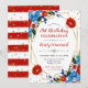 Convite Aniversário das Flores Vermelhas e Azuis da primav