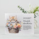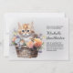 Convite de aniversário feminino ou feminino com pintura aquarela de um gatinho amarelo giro sentado num cesto de flores roxas e pêssego. Personalize com seu próprio texto. Entre em contato comigo para obter assistência com sua personalização ou para solicitar outros produtos Zazzle correspondentes ou coordenadores para sua celebração.