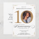 Convite de Aniversário de 10 anos de Casamento com Caligrafia em Ouro Branco. Convite de celebração de aniversário de casamento especialmente projetado com elegância, apresentando uma foto personalizada do casal e caligrafia com elementos florais vintage. Uma maneira verdadeiramente memorável e especial de celebrar este marco!