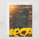 Convites Sunflower 10 anos de casamento Rustic Fall. Personalizados com os detalhes da sua celebração. Você pode alterá-lo para aniversários de 15, 25, 30, 40, 50, 60 anos etc. Apresenta quadro-negro criativo, girassóis e tipografia em um fundo de madeira rústica. Ótimos convites de aniversário de casamento elegantes para casamentos rústicos no campo ou outros aniversários. Este convite de aniversário de casamento foi projetado por superdazzle.com