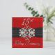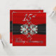 Sofisticado e elegante décimo quinto aniversário de casamento com visual de cetim vermelho falso e fita de cetim preta com diamantes e rubis em um estilo fechado que continua na parte de trás. A parte de trás tem uma sobreposição de cartão falso prateado e nacarado montada nos cantos com fechos de rubi e diamante. Design original de Holiday Hearts Designs (todos os direitos reservados).