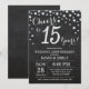 Convite de Aniversário de 15 anos de Casamento Quadro de Giz Preto e Prata. Décimo Quinto Aniversário de Casamento. Fundo de Diamante Brilhante Preto e Prata. Confetes Prateados. Aniversário de Adulto. Festa de Aniversário Masculino ou Feminino. Para personalizar ainda mais, clique no botão "Personalizar" e use nossa ferramenta de design para modificar este modelo.