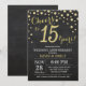 Convite de Aniversário de 15 anos de Casamento Quadro Negro e Dourado. Décimo quinto Aniversário de Casamento. Fundo de Diamante Brilhante Preto e Dourado. Confetes Dourados. Aniversário de Adulto. Festa de Aniversário de Mulher ou Homem. Para personalização adicional, clique no botão "Personalize" e use nossa ferramenta de design para modificar este modelo.