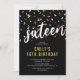 Convite Aniversário de 16 anos Black & Gold Sweet Sixteen