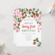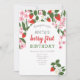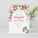 Convite de aniversário de 1 ano cor-de-rosa e vermelho floral, fofo, verão, moderno para festa de bebê-menina.