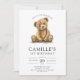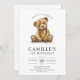 Convite de aniversário de 1 ano de menina ursinho de pelúcia com aquarela fofa.