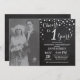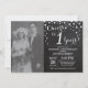Aniversário de 1 ano de Casamento com foto personalizada. Convite Quadro de Giz Preto e Prata. Fundo de Diamante com Brilho Preto e Prata. Confetes de Prata. Aniversário de Adulto. Festa de Aniversário de Homem ou Mulher. Para personalização adicional, clique no botão "Personalize" e use nossa ferramenta de design para modificar este modelo.