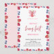 Um convite de chá de bebê fofo apresenta um mirtilo em aquarela, morango e laço. Esses convites de chá de bebê são facilmente personalizados para o seu evento, basta adicionar seus detalhes.