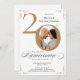 Convite de Aniversário de 20 anos de Casamento Calligraphy em Ouro Branco. Convite de celebração de aniversário de casamento especialmente projetado com elegância, apresentando uma foto personalizada do casal e caligrafia com elementos florais vintage. Uma maneira verdadeiramente memorável e especial de celebrar esse marco!