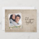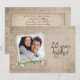 Convite de casa aberta para aniversário de 20 anos de casamento com moldura de foto personalizada antiga e buquê de margaridas e pérolas.