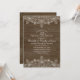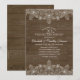 Convites de Aniversário de 20 anos de Casamento Rustic Wood Country Lace e Pérolas. Personalizados com os detalhes da sua celebração. Característica de linda renda, pérolas e tipografia em um fundo de madeira escura rústica. Convites de aniversário de casamento elegantes e ótimos para aniversários country criativos. Este convite de aniversário de casamento foi projetado por superdazzle.com