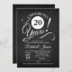 Convite de aniversário de 20 anos rústico com padrão de quadro negro e fonte branca. Saúde por 20 anos! Perfeito para uma celebração elegante.