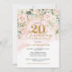 Convite Aniversário de 20 rosa claro verde de rosas delici