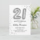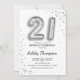 convite de festas aniversário de 21 anos. Design elegante em prata brilhante. O convite contém balões prateados número 21 e fontes de script. Perfeito para uma comemoração de na moda. Envie-me uma mensagem se precisar de idade personalizada.