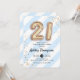 convite de festas aniversário de 21 anos. Design elegante em ouro falso brilhante com listras azul e branca de turquesa aqua. Convide cartão com balões dourados número 21, fonte de script com confetti. Perfeito para uma comemoração de na moda 21 dias de rua. Envie-me uma mensagem se precisar de idade personalizada.
