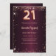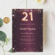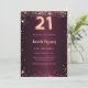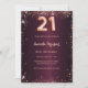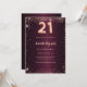 Para um aniversário de 21 anos elegante. Uma cor de fundo de gradiente burguês. Decorado com faíscas rosa douradas. Personalize e adicione um nome e detalhes da parte. O nome é escrito com um script de estilo manuscrito