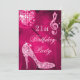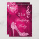 Convites de aniversário rosa-quente. Convites personalizados para comemoração de aniversário de 21 anos, personalizados e elegantes, de mulheres, com glitz e glamour. O belo rosa-quente e branco-duplo convida os 21º / 21anos de idade com uma bola retrovisor divertida, imagens impressas glamourosas estonas, brilho, sequências, diamantes bling jewels brilham calçados de moda, e notas musicais brilhantes / notas musicais com brilho em um piscar-de-rosa quente vibrante e fundo cintilante. Chic, clássico, fofo, giro, convites modernos para festas em tendências, cores / cores da moda. Estes groovy, rico, na moda, sofisticados, bonito, convites entre raparigas são decorados/impressos em ambos os lados. Convites perfeitos para um evento de dança jante. Pérolas e tapetes de renda por ©Hazel Kinvig-Paul www.design-a-dream.co.uk NOTA: todos os convites no Zazzle têm imagens impressas planas. Se precisar de assistência para personalizar seu produto, entre em contato comigo através da minha loja e eu ficarei feliz em ajudar.