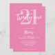 Um simples convite de aniversário de 21 anos moderno com elegante tipografia de escrita de caligrafia e design minimalista a cor rosa e branca.