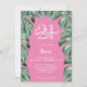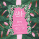 Um simples convite de aniversário de 21 anos moderno com elegante tipografia de escrita de caligrafia e design de cor rosa minimalista com verde tropical botânico.