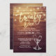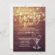 Vinte e um Aniversário / 21 Convite, Modelos de Cartões de Convite de festas aniversário de 21 anos - Manuscrito Dourado Elegante, Óculos de Champanhe Vintage e Luzes de Cordas no Fundo Russo de Madeira. Todo Estilo De Texto, Cores, Tamanhos Podem Ser Modificados Para Ajustado Das Suas Necessidades.