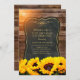 Convites De Queda Rústica Do Partido Do aniversário de 21 anos De Girassol. Personalizado para os detalhes da sua celebração. Pode mudar para qualquer aniversário. Desfrute do quadro criativo, dos girassóis e da tipografia em um fundo de madeira rústica. Excelente de convites para comemoração de aniversário elegantes para o país rústico ou outras festas. Este convite foi projetado por superdazzle.com