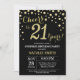 Convite aniversário de 21 anos de surpresa, preto e Dourad