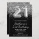 Crie o seu próprio aniversário de 21 anos moderno com a arte digital do balão de folha falsa. Envie uma mensagem ao criador se precisar de uma idade diferente criada. O fundo de vidro feminino apresenta gráficos decorativos faux brilhantes prateados sobre uma cor preta sólida. O brilho luxuoso, o brilho e os efeitos de texto em folha são criados por elementos artísticos que impressão gostam de uma foto. Você pode personalizar a caligrafia caprichosa e modernos todos os estilos de fonte e cores de bonés.