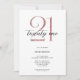 Um simples convite de aniversário de 21 anos moderno com elegante tipografia de escrita de caligrafia e design minimalista em branco e rosa.