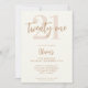 Um convite de aniversário de 21 anos simples e moderno com tipografia de caligrafia elegante e design minimalista em cor creme e marrom.