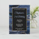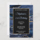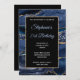 Crie o seu próprio convite para comemoração de aniversário do na moda de rico, 5x7, para a aniversário de 21 anos. Glitter dourado decorativo e fundo marinho gráfico de arte digital geode azul agate. Há brilho de ouro e sobreposição de retângulo preto para suas informações de convite. Personalize os estilos de fonte claros, azuis e brancos, cor e tamanho. O luxo brilho e agitação modernos são criados com a aquarela de arte digital e elementos de estilo brilhante que impressão gostam de uma foto. Fabuloso convite para o seu melhor amigo.
