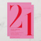 Convite à aniversário de 21 anos de Chic Moderno Vermelho Rosa Minimalista