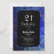 Um convite de festas aniversário de 21 anos preto com uma rica borda azul pintada.