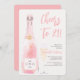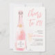 Moderno aplauso a 21 convites de aniversário. Contra a ilustração aquosa de uma garrafa de champanhe rosa e um copo de champanhe efervescente, este convite promete uma celebração elegante e divertida. Use as ferramentas de design para personalizar o texto, as fontes e as cores. Também disponível como download digital.