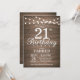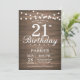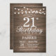 Convite Rustic aniversário de 21 anos com as luzes de cordas Fundo de madeira. 16º 18º 21rua 30 40º 50º 60º 80 90 100º, Qualquer idade. Para mais personalização, clique no botão "Personalizar" e use nossa ferramenta de design para modificar este modelo.